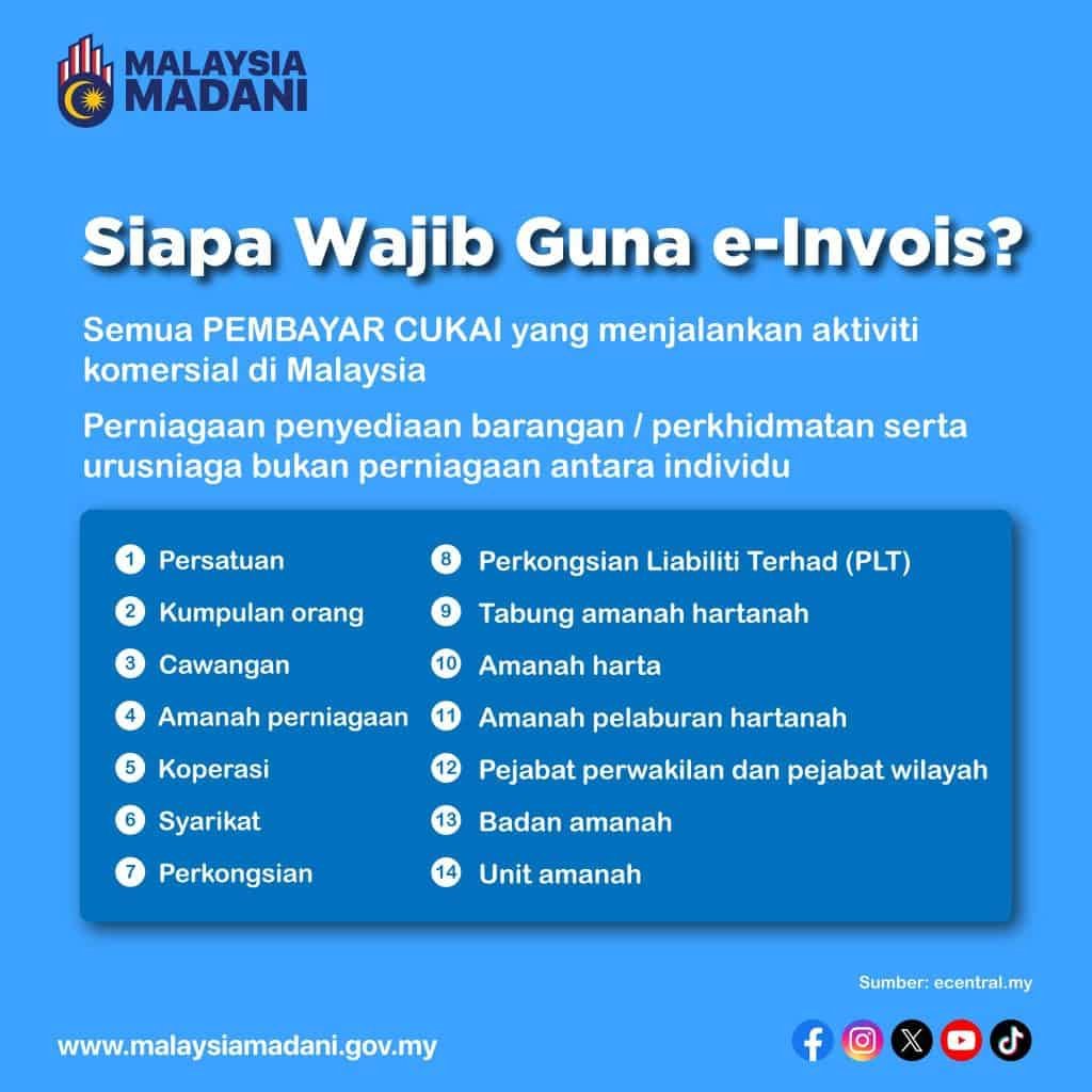 Tidak semua perniagaan diwajibkan segera; perniagaan mengikut fasa akan dikenakan mandatori e-Invoicing bermula dari tahun 2024 hingga 2026. Syarikat yang terlibat dalam transaksi berkala dengan pembeli biasa perlu bersiap sedia, manakala usahawan kecil boleh menggunakan sistem secara sukarela terlebih dahulu.