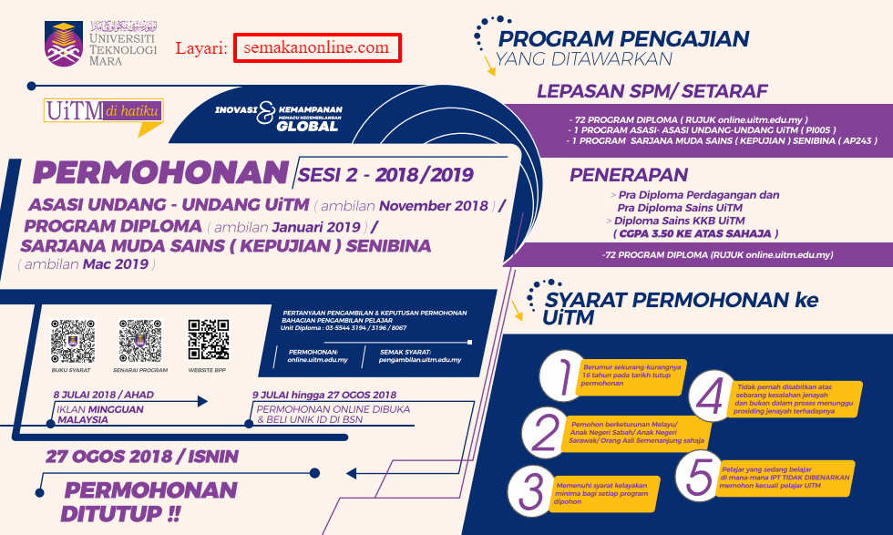 Panduan Masuk UiTM: Syarat Kelayakan Mengikut Kursus, sila lihat kategori Pendidikan.